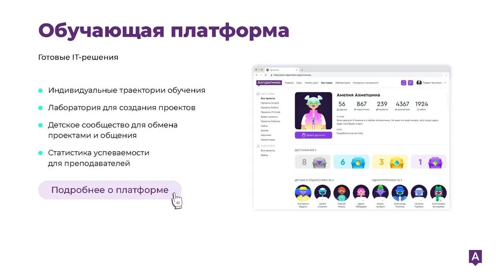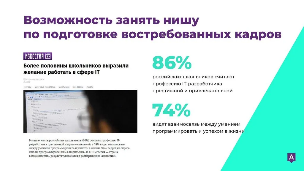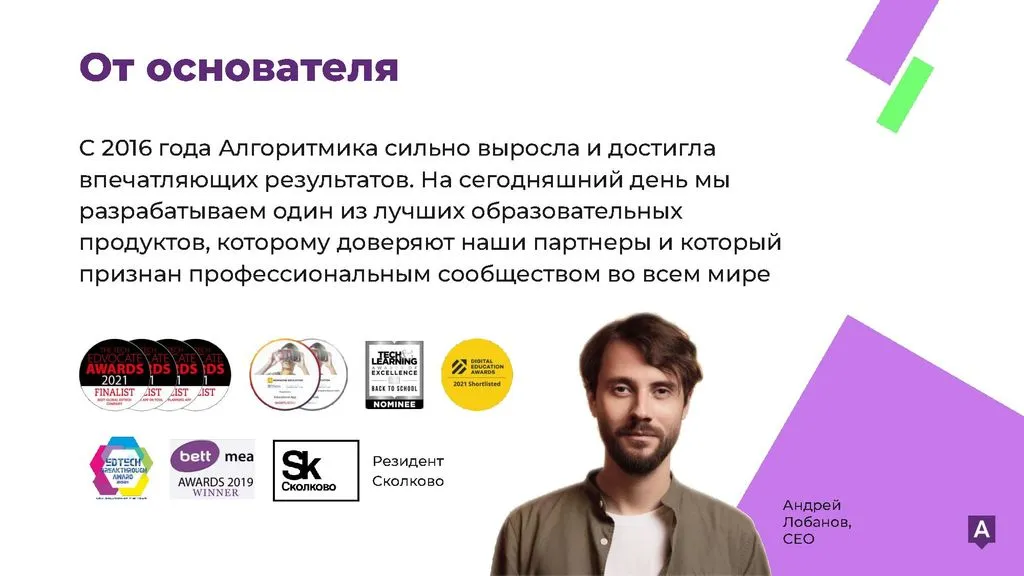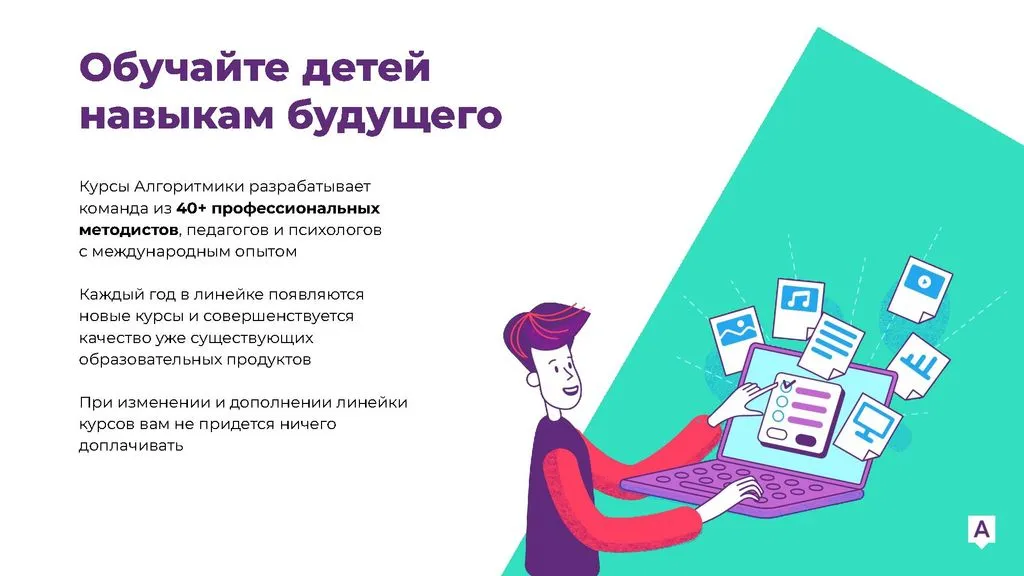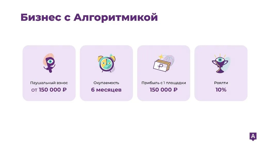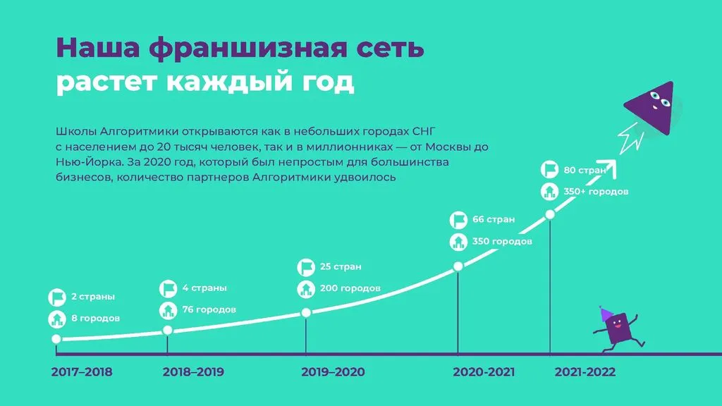 «Алгоритмика» — лидер среди школ программирования для детей и одна из лучших франшиз в сфере образования. Наша первая школа начала работу в 2016 году, и с тех пор мы накапливаем опыт в управлении школами и знание рынка. Мы создаем новое образование сегодня, чтобы оставаться на вершине в будущем. Присоединяйтесь и создавайте успешное будущее вместе с нами!