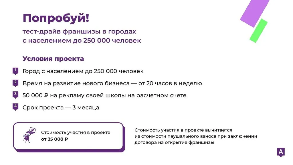 Мы предлагаем два варианта франшизы: