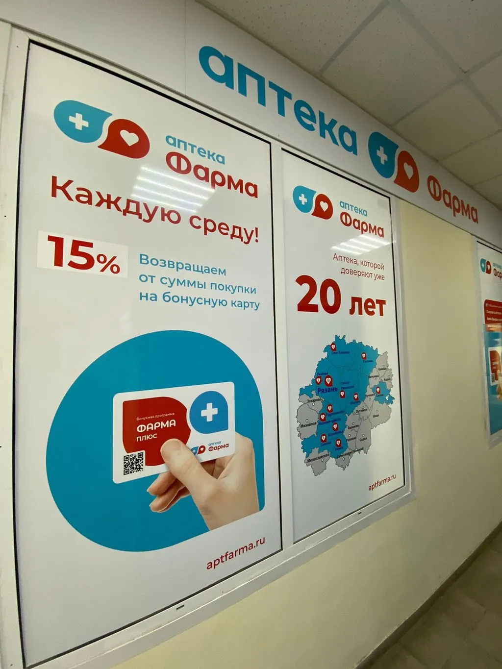 Сегодня «Аптека Фарма» — это 385 фирменных аптек в различных городах и регионах России и более 65 аптек в Рязани, Рязанской области, Москве и Московской области. Несмотря на открытие 80 новых аптек федеральных сетей, мы сохранили свою долю на рынке, увеличили выручку на 25% на каждую аптеку, а чистый доход компании составляет более 7% после вычета всех расходов 💯. Более 75% покупок совершается по картам лояльности.