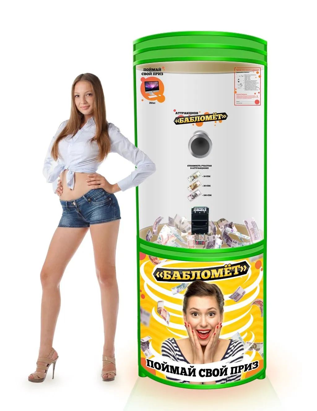 Франшиза "Бабломет" — это оригинальный развлекательный аттракцион, который представляет собой автомат, где участники могут поймать деньги или купоны, находясь в замкнутом пространстве с потоками воздуха. Компания основана в 2017 году и быстро завоевала популярность благодаря уникальности своего формата. Автомат идеально подходит для торговых центров, развлекательных комплексов, кафе и прочих общественных мест. Основная цель — привлечение посетителей и создание положительных эмоций.