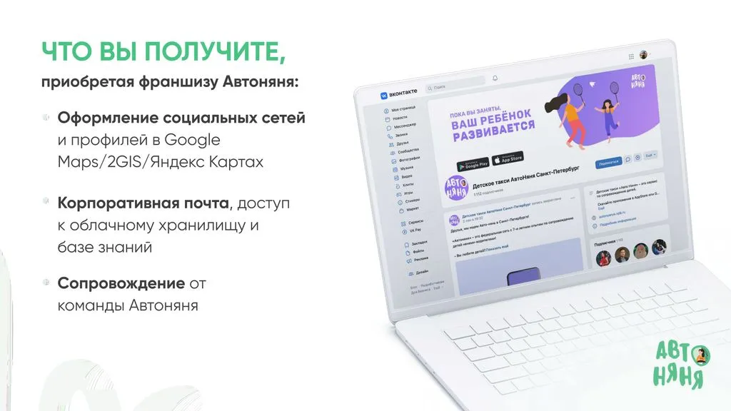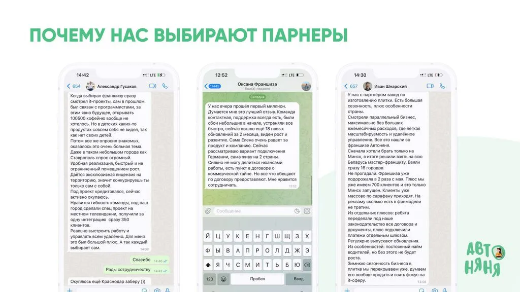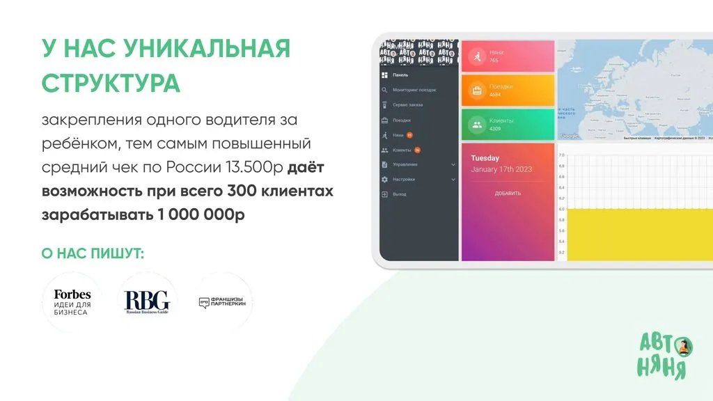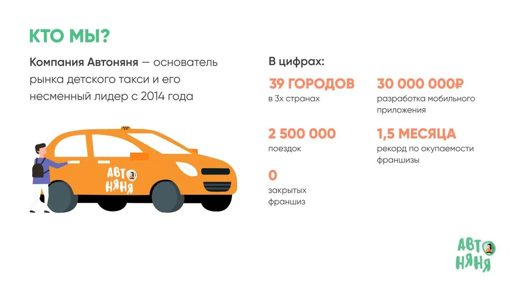 С 2022 года предприниматели могут воспользоваться нашей моделью и открыть «Автоняню» в своём городе. Присоединяйтесь к нашей команде!