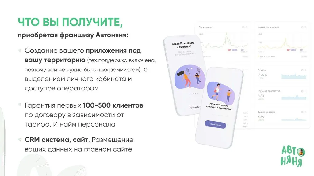 Франшиза «Автоняня» — это возможность открыть в своём городе сервис детского такси с мобильным приложением и 💰 зарабатывать до 750 000 рублей ежемесячно.