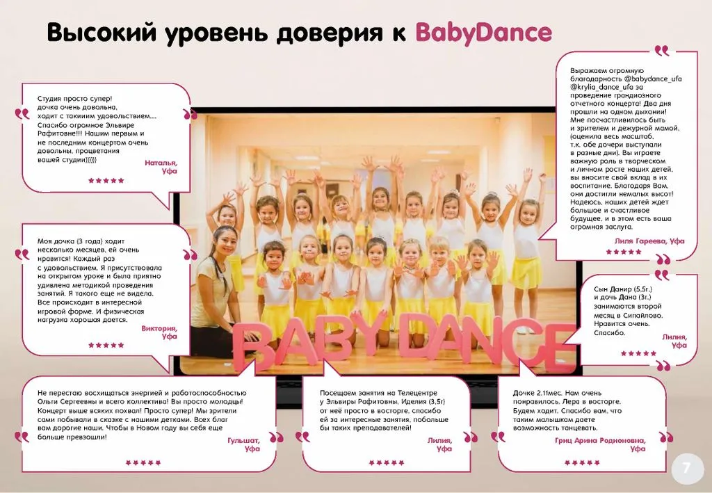 📈 Наш подход быстро стал популярным среди родителей, и уже к концу первого года работы мы открыли три филиала. Сегодня BabyDance – это 17 студий в разных городах, более 100 групп, обучающих детей разного возраста. За 12 лет мы воспитали более 15 000 учеников.