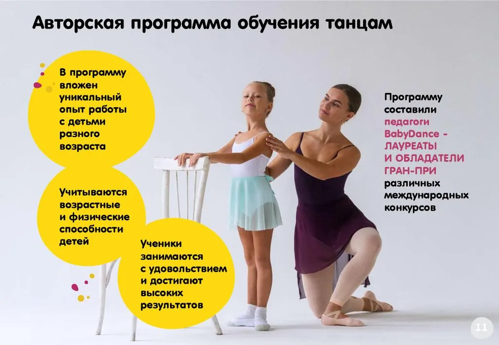 💃 В 2011 году мы открыли первую хореографическую студию BabyDance в Уфе. Основательница студии – Ольга Семенова, профессиональный педагог-хореограф, лауреат и дипломант международных конкурсов, ученица клуба Инессы Максвелл. Концепция школы базируется на развитии личности ребёнка через танец.