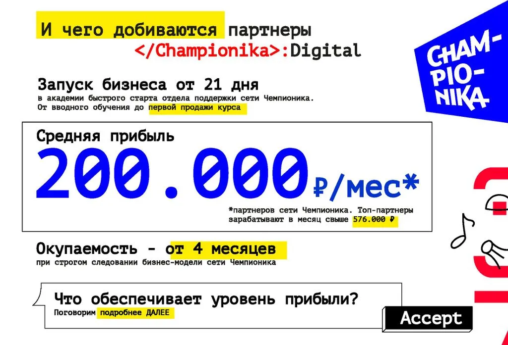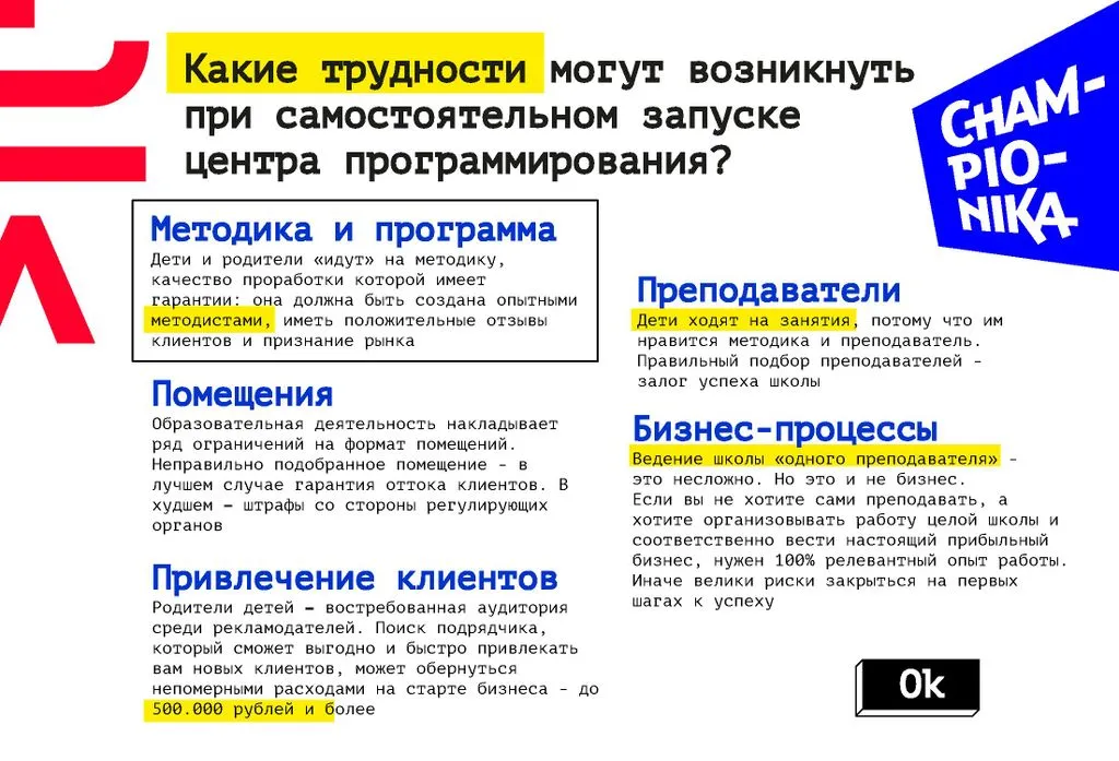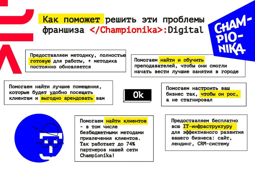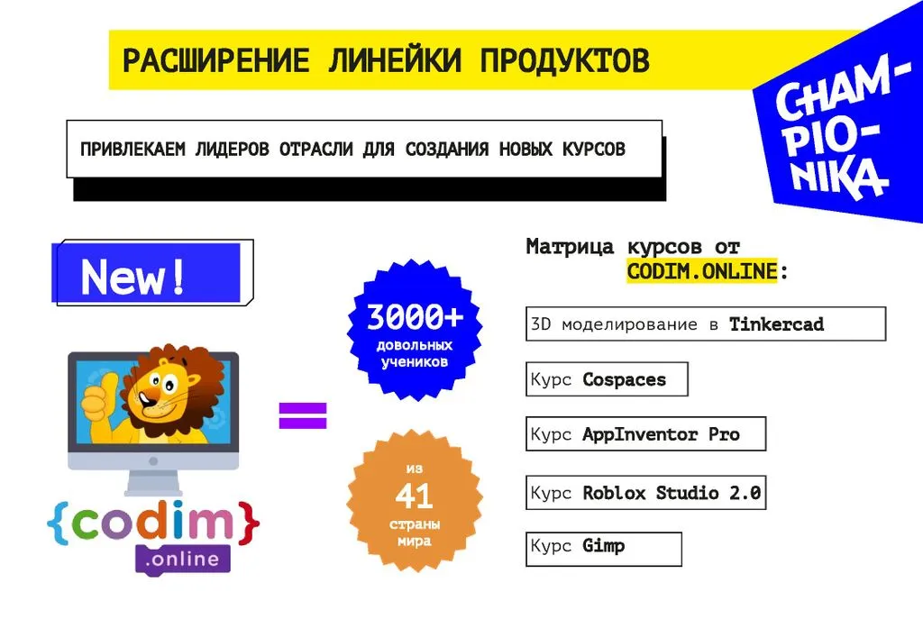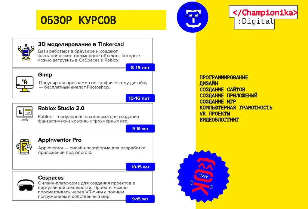 Championika Digital – это франшиза детского центра программирования и цифрового творчества от компании, которая заняла первое место по версии Forbes в 2018 и 2019 годах.