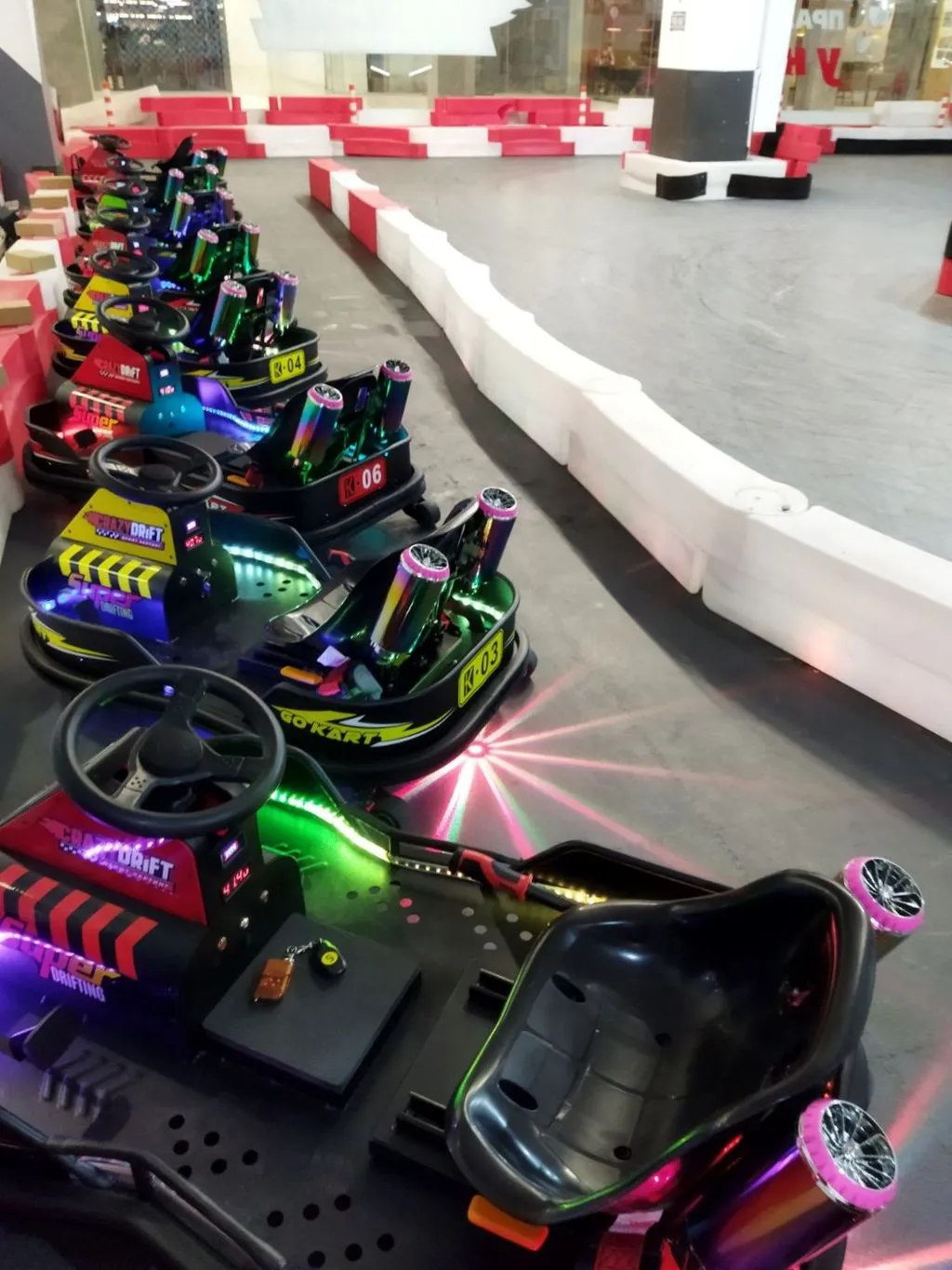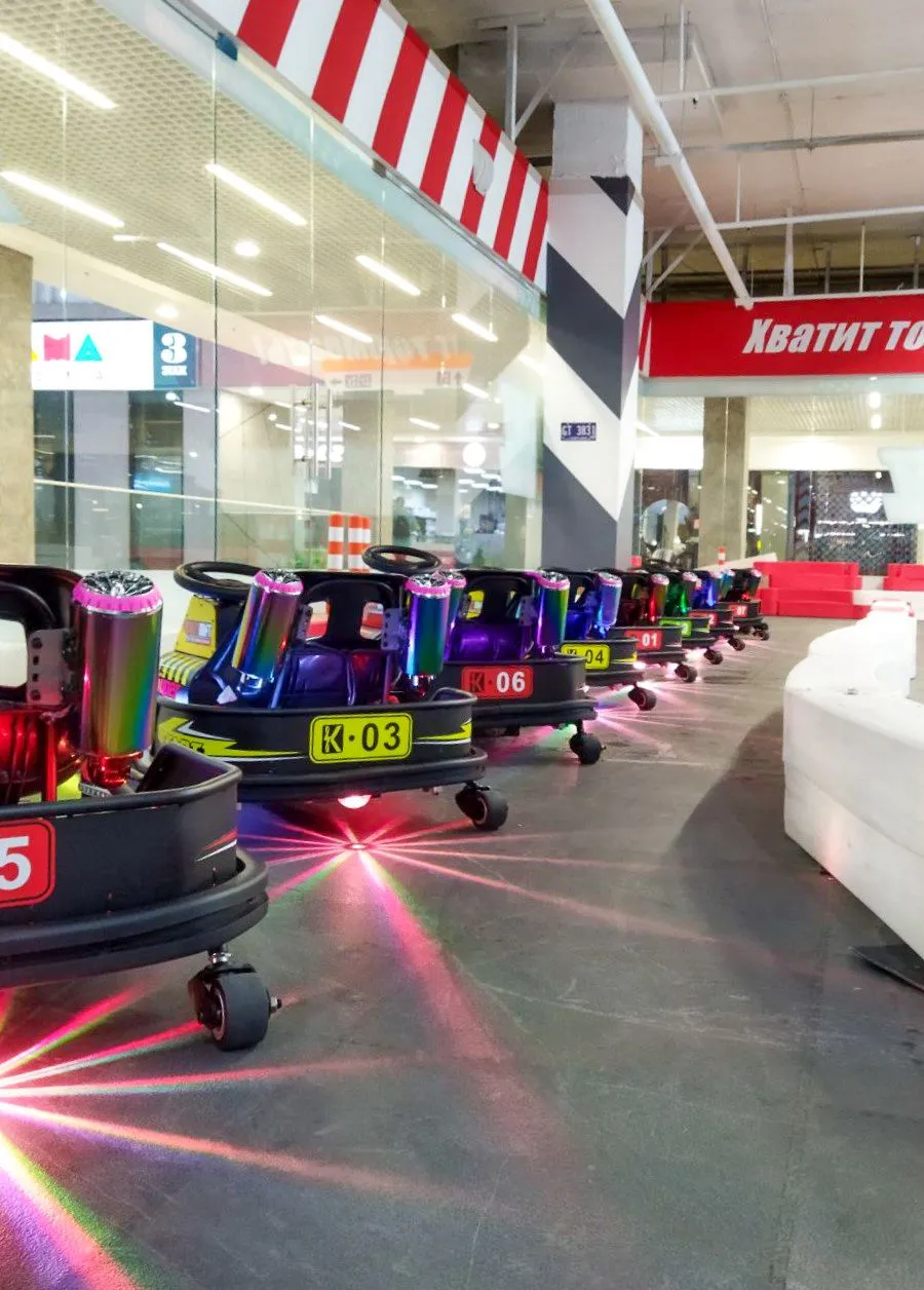 Мы сами производим дрифт-карты для своих арен. Наши машины работают на электромоторе, имеют специальный рычаг для дрифта, что позволяет поворачивать на месте и скользить боком 🏎️.