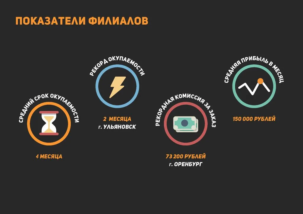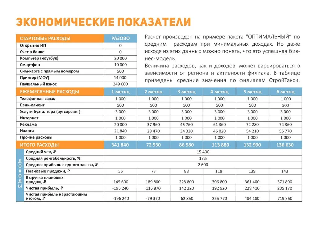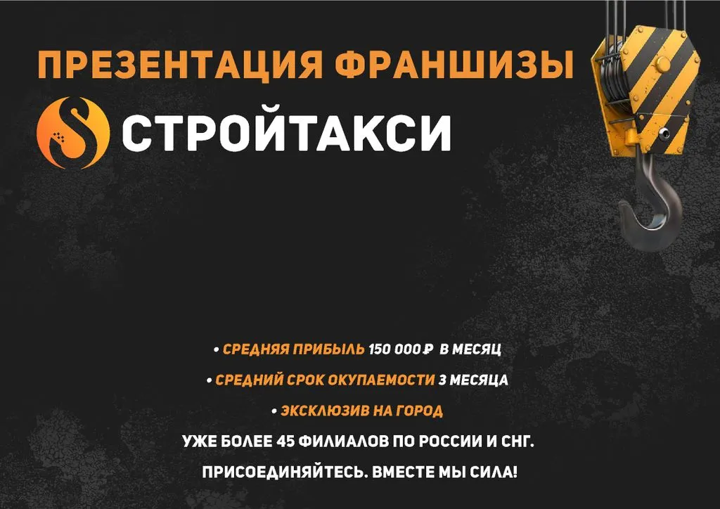 Среднее время открытия филиала СтройТакси — 3 недели. Средний срок выхода на прибыль — 4-6 месяцев.