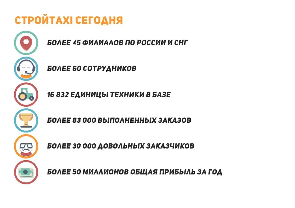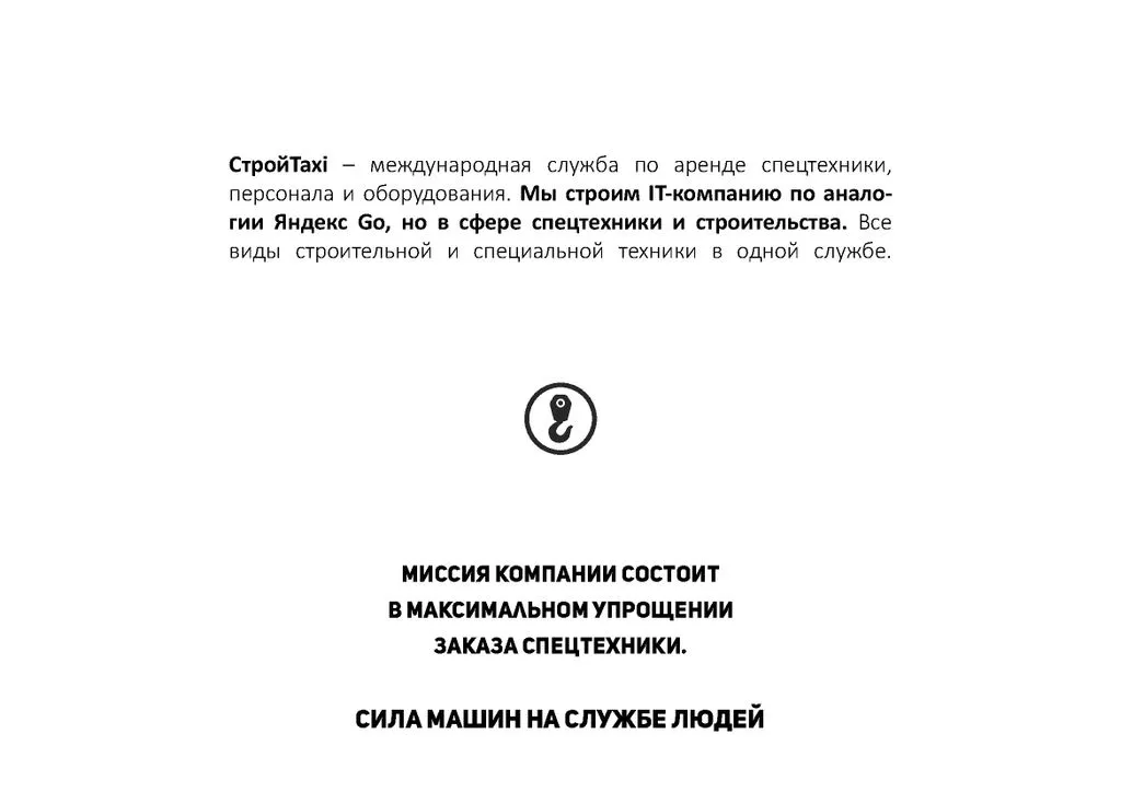По сути, СтройTaxi — это аналог привычных диспетчерских служб такси, но в сегменте силового транспорта. Все виды строительной и специальной техники можно заказать по единому номеру, через один сайт или одно мобильное приложение. Мы строим IT-компанию, по аналогии с Яндекс Go, но для сферы спецтехники и строительства. 💻