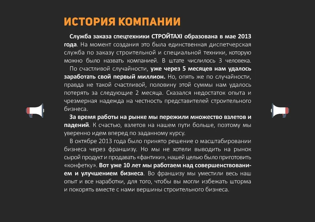 На момент создания это была единственная диспетчерская служба по заказу строительной и специальной техники, которую можно было назвать компанией. В штате числилось всего 3 человека. 👥