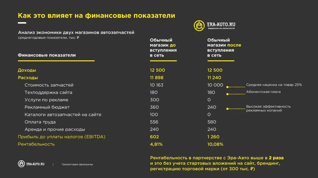 Вы будете продавать автозапчасти с наценкой от 25% до 100%, сотрудничая с проверенными поставщиками. Наши партнёры зарабатывают от 200 000 до 500 000 рублей чистой прибыли в месяц.