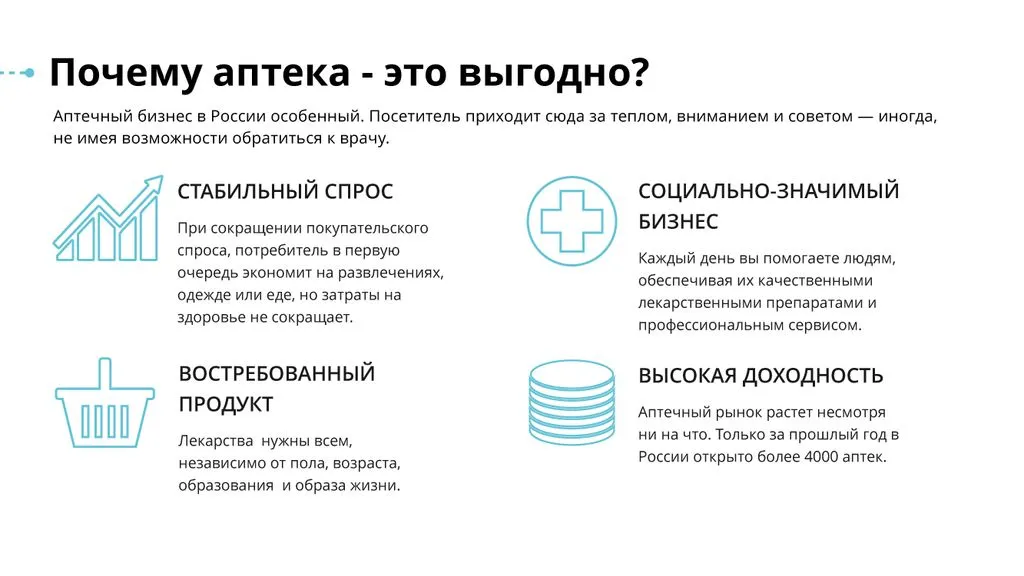 Мы считаем своими клиентами всех, кто хочет заниматься аптечным бизнесом, вне зависимости от опыта или наличия действующего бизнеса. 💡