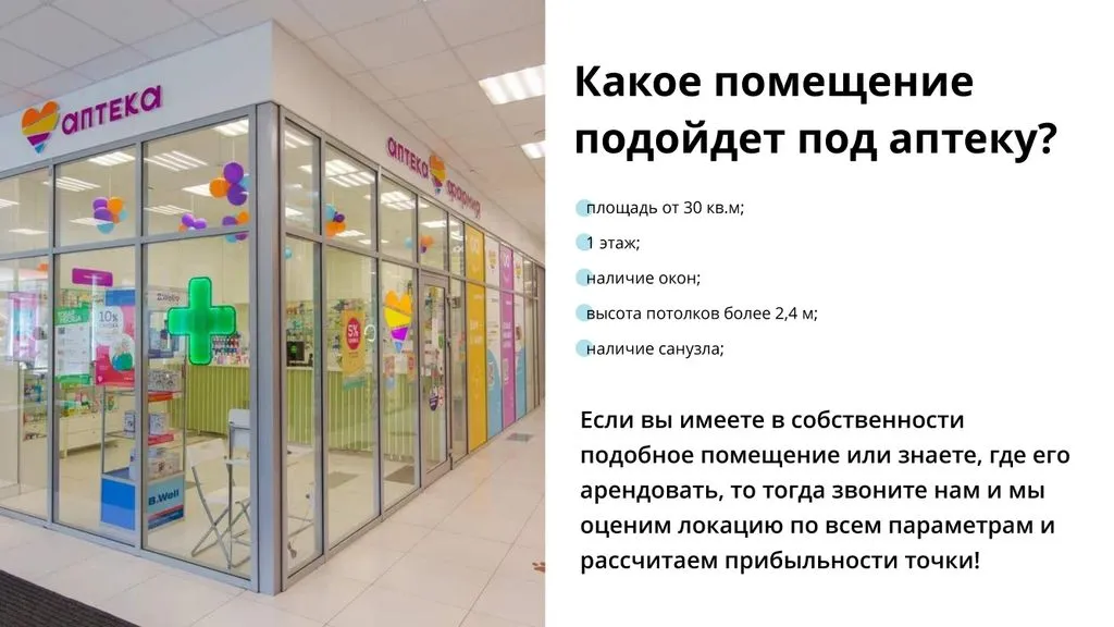 Каждое помещение оценивается по комплексу критериев, и на основе анализа принимается решение об открытии аптечного пункта. 📊