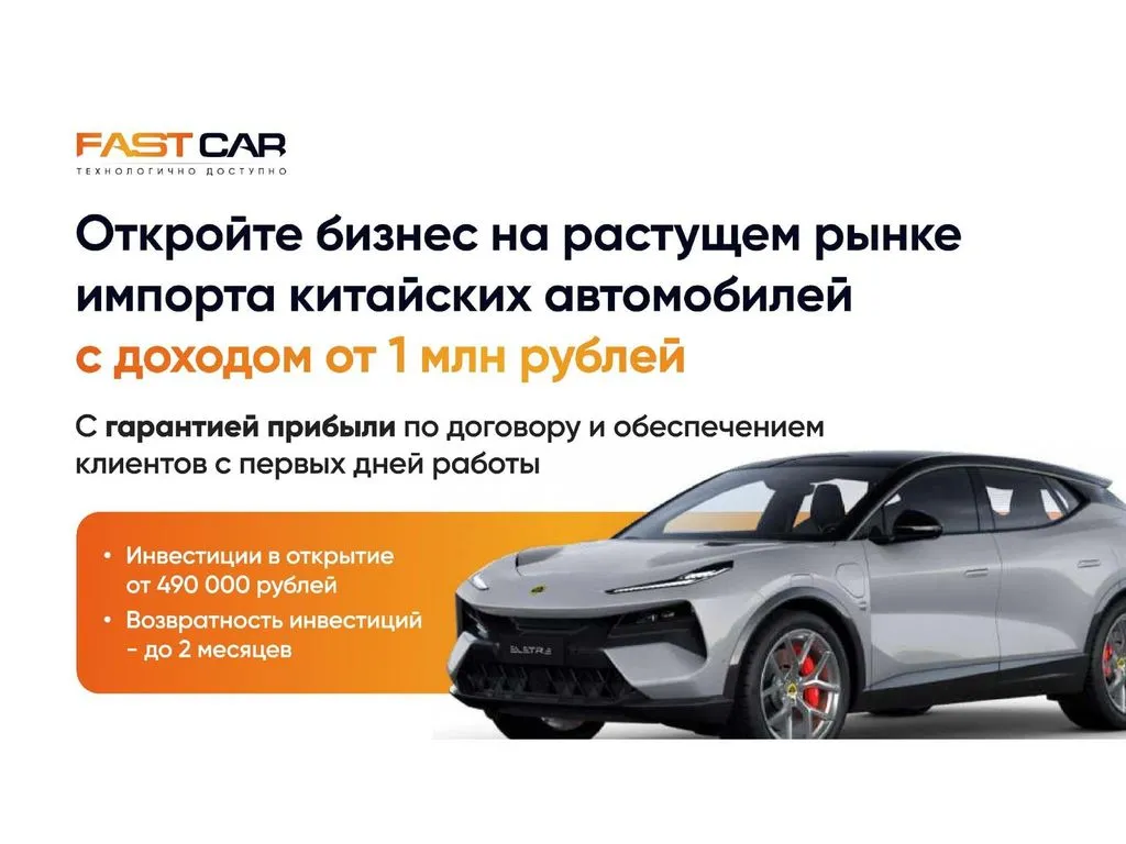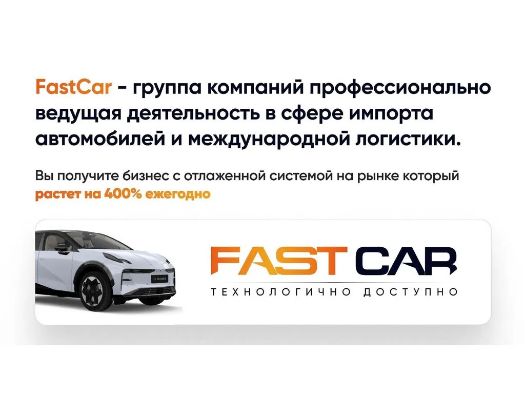 Франшиза FastCar – это возможность продавать автомобили напрямую из Китая, не становясь дилером, и зарабатывать от 400 000 до 2 000 000 рублей в месяц.