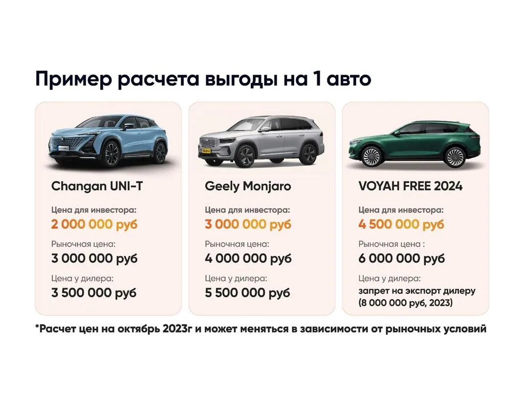 Спрос в 2024 году продолжит расти (по прогнозам на 15% до 1,3 миллиона автомобилей). 🚀 Альтернативные предложения отсутствуют, а цены дилеров зачастую выше на 1,5 - 2 млн рублей. Многие популярные модели просто отсутствуют у дилеров в России. 🌍