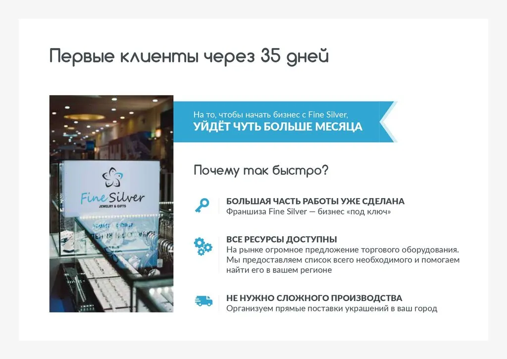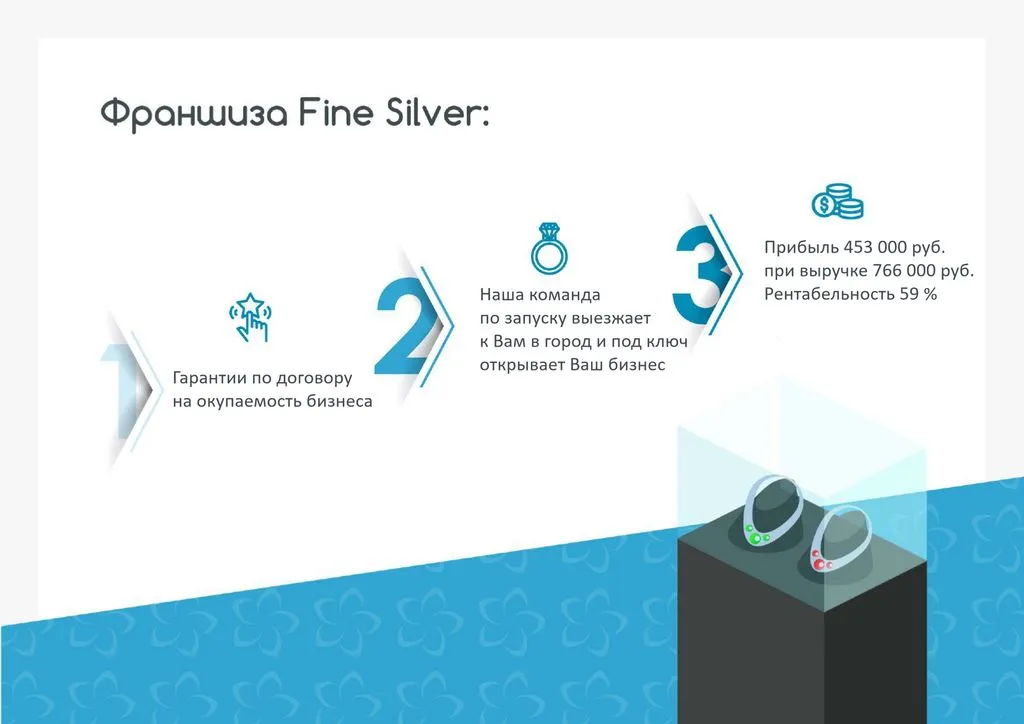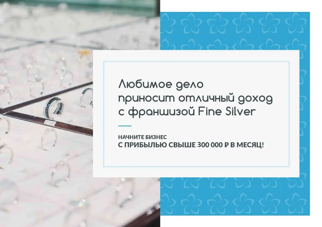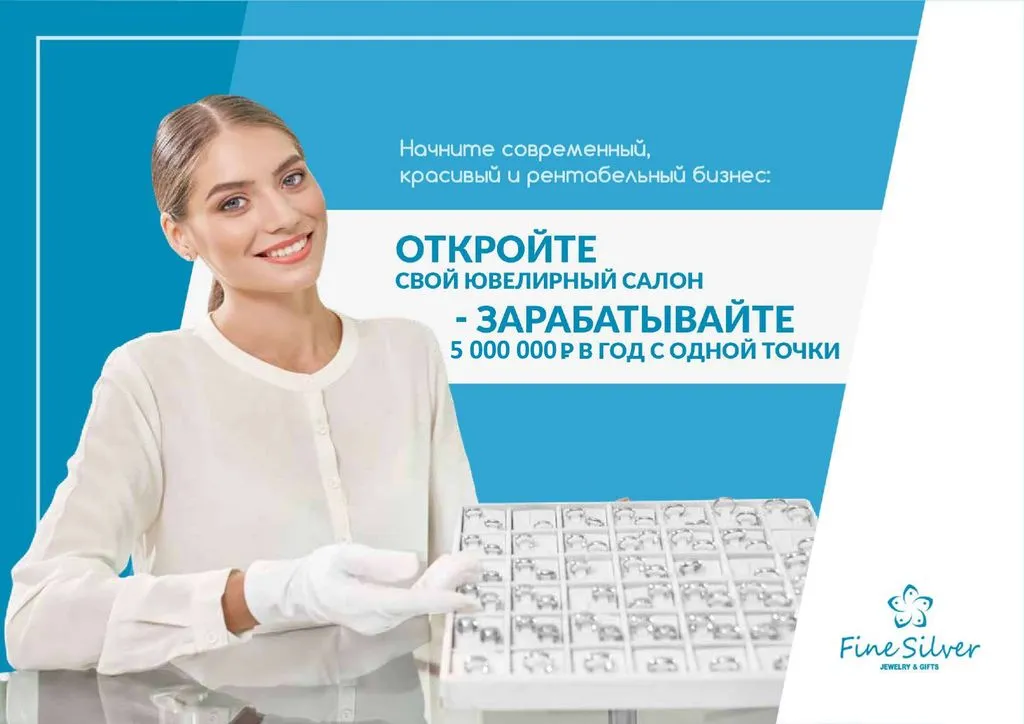 Франшиза Fine Silver – это возможность быстро открыть собственный магазин украшений из серебра и получать товар по специальным ценам, зарабатывая от 150 000 рублей в месяц. 💵📊