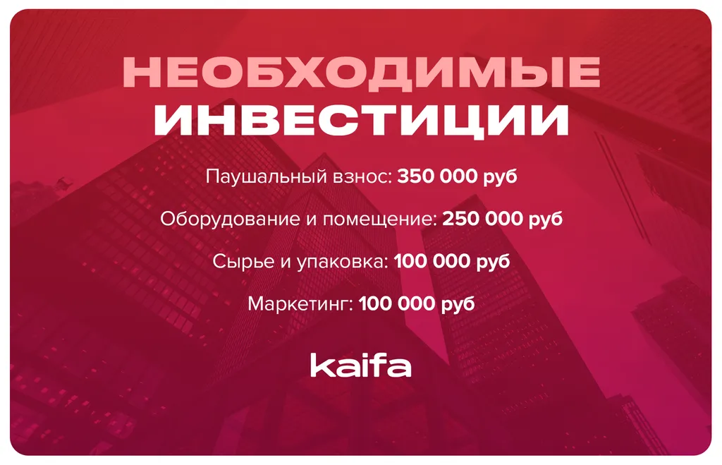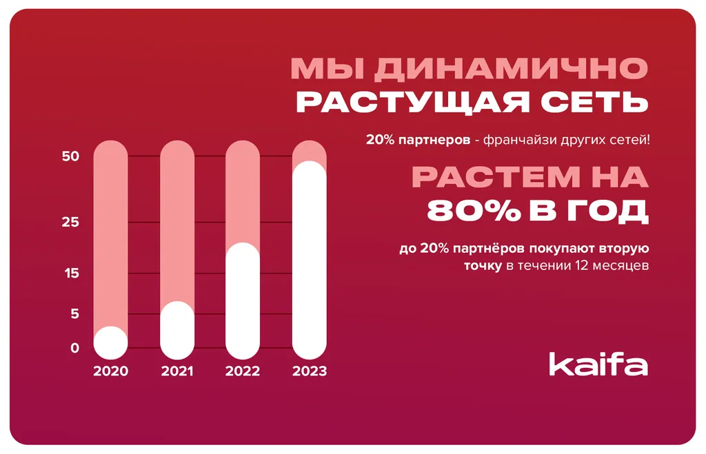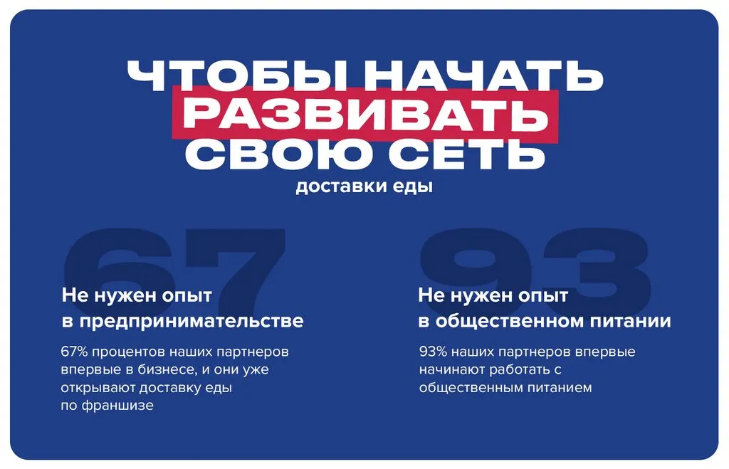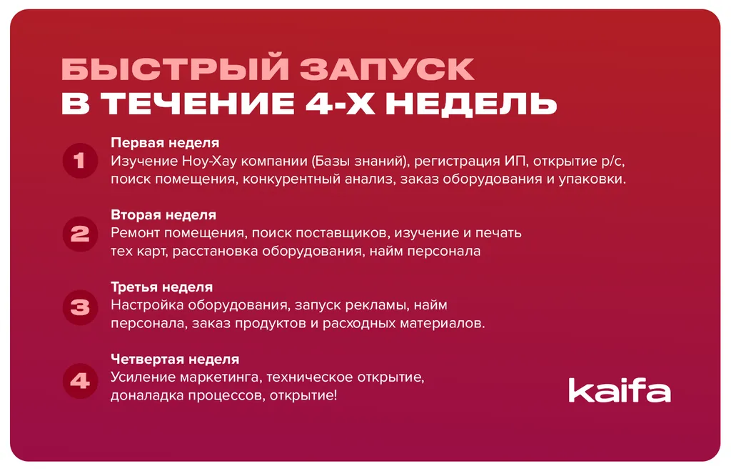 Экономия: запуск в два раза дешевле, чем самостоятельно, и в четыре раза дешевле, чем у других франшиз 🍱.