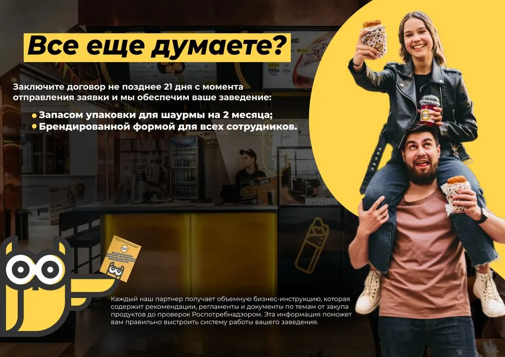 ShaurMeals — это франшиза с гарантией и полной поддержкой. Оставляйте заявку, и мы начнём сотрудничество!