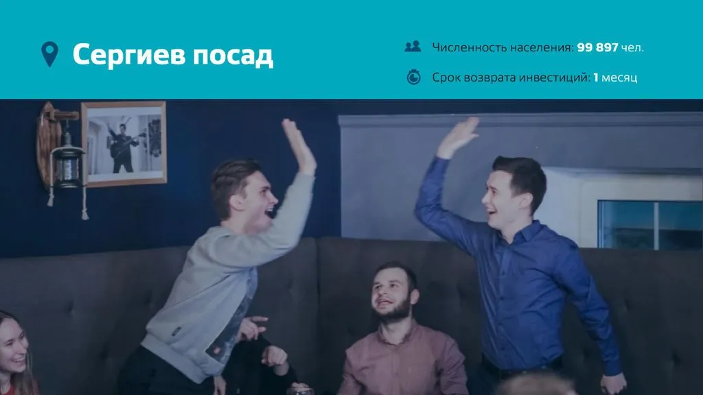 Вам понадобится только небольшой маркетинговый бюджет для ускорения популяризации проекта в вашем городе. 📈