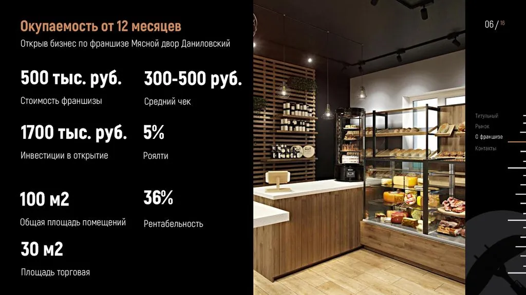 Франшиза «Мясной Даниловский Двор» — это ваш шанс открыть магазин мясных деликатесов и получать прибыль до 500 000 рублей в месяц. 💰