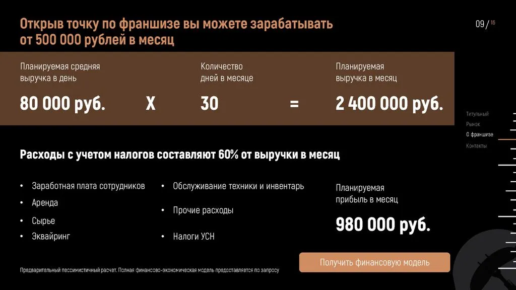 Преимущества:💵 Средняя выручка в день: 60 000 рублей