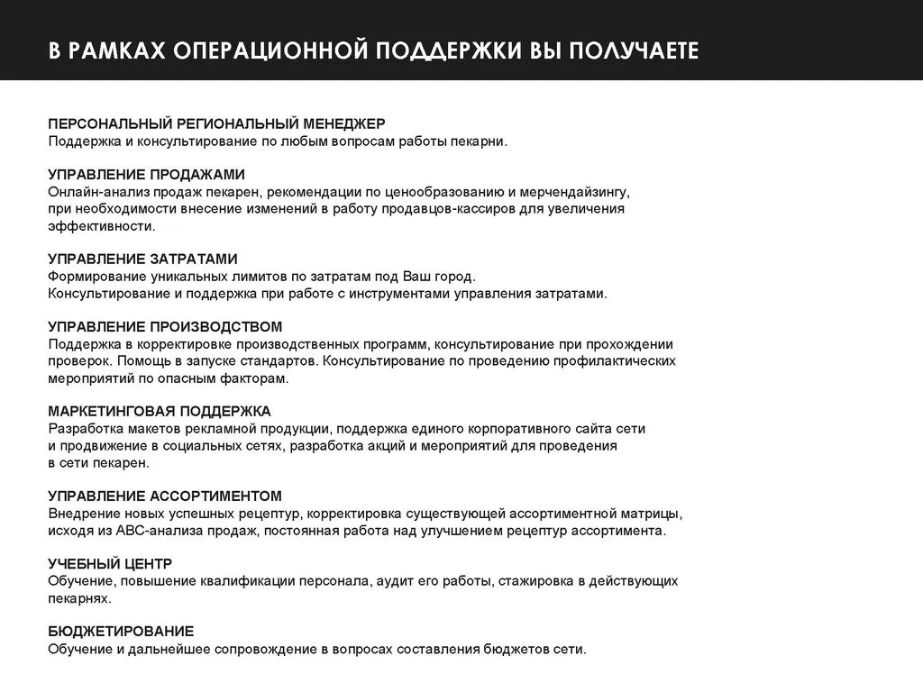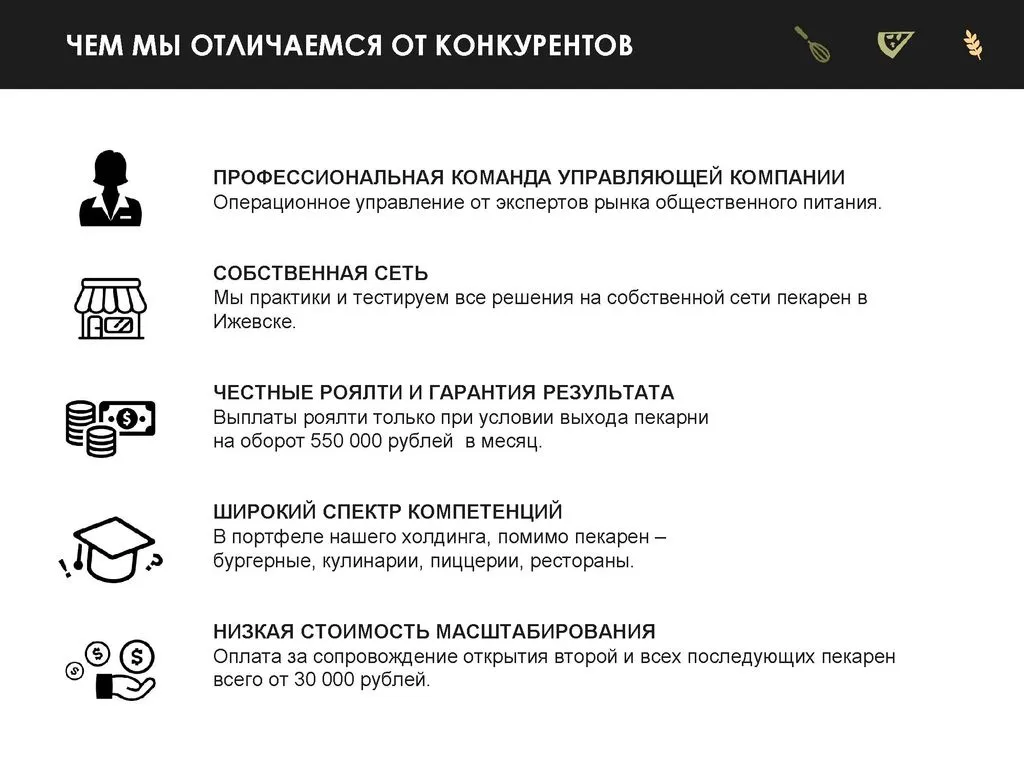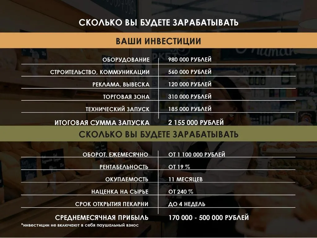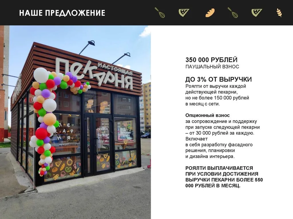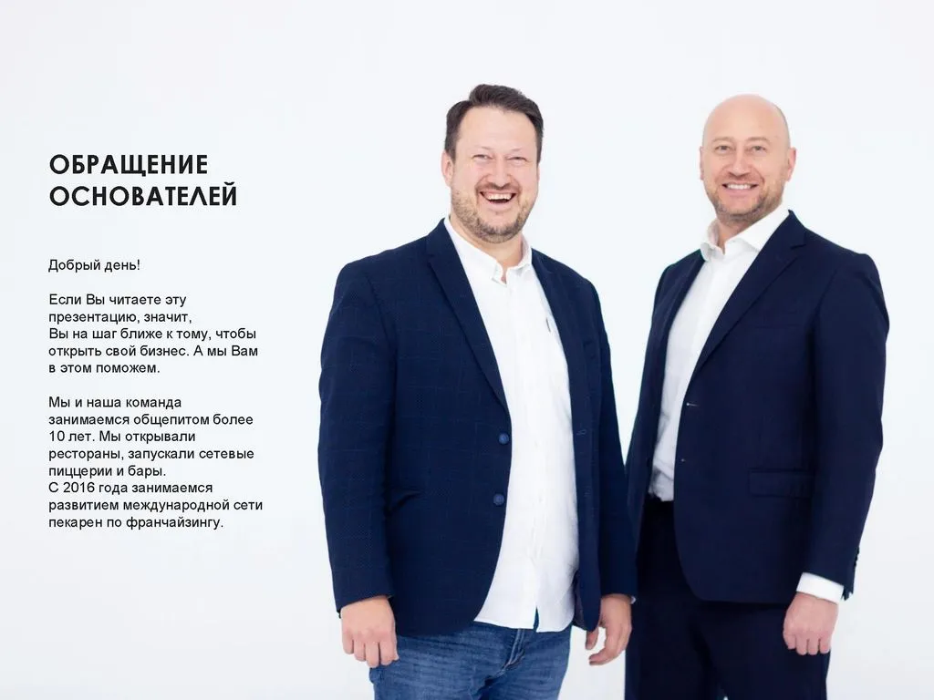 Наша команда занимается общепитом более 10 лет — от ресторанов до сетевых пиццерий и баров. С 2016 года мы развиваем международную сеть пекарен по франчайзингу. 🌍