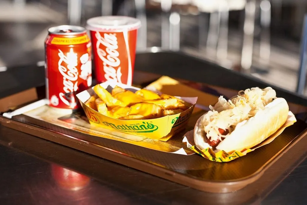 Nathan’s Famous — это культовый бренд, известный своими горячими хот-догами, которые готовятся по оригинальному рецепту. Сеть завоевала популярность благодаря высокому качеству продукции и уникальному вкусу. Кроме хот-догов, в меню также есть другие блюда: бургеры, картошка фри и напитки. 🥤🍔