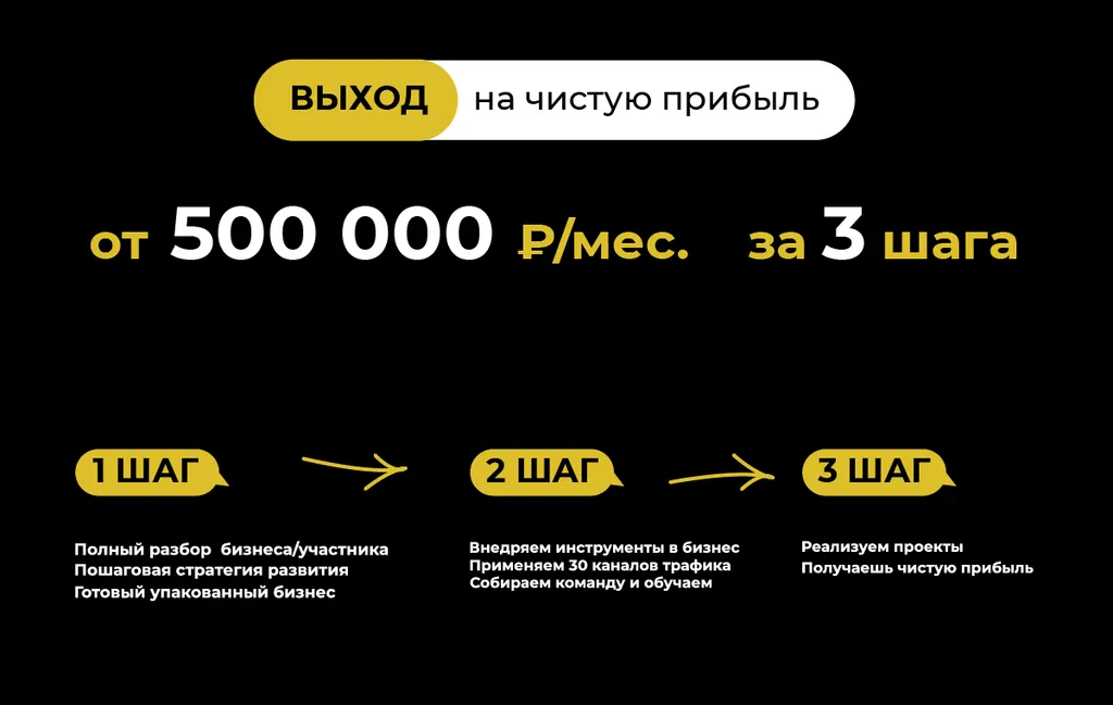 👤 Основатель компании, Михаил Нимец, имеет 12 лет опыта работы в России, СНГ и Европе и успешно реализовал проекты для таких компаний, как H&M, S7, IQOS, TELE-2, NVIDIA и Philip Morris. 🎯 Михаил девять раз подряд получил официальное признание как лучший эксперт и лидер в своей области среди 300 предпринимателей и экспертов. 🔝 Под его руководством участники достигли результата в 202 млн рублей за 5 дней без начальных вложений!