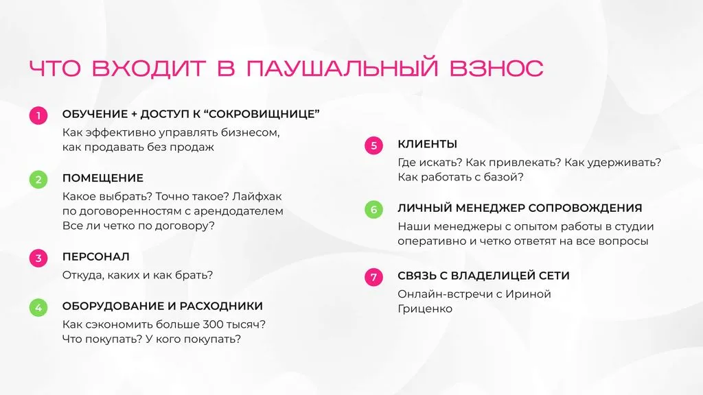 📚 Обучение — это наш приоритет. Начнём с онлайн-встреч с представителями разных отделов, где вы получите пошаговые инструкции для запуска салона. 🚀 После этого вас будет сопровождать персональный куратор для достижения ваших финансовых успехов. 💼