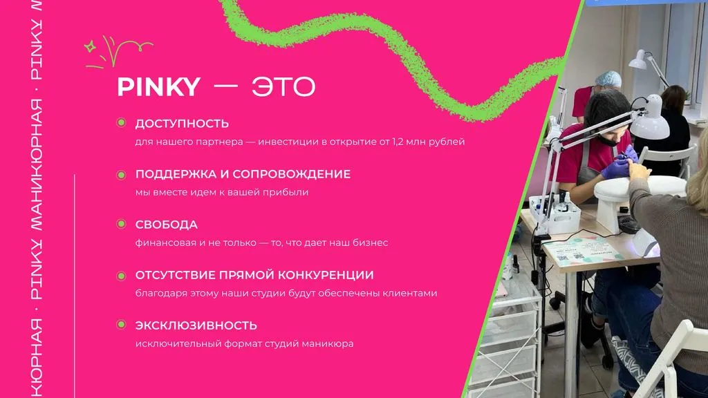 🌸 Франшиза PINKY — это шанс открыть прибыльную маникюрную студию по модели «высокое качество — доступная цена», получить поддержку от профессиональной команды и выйти на чистую прибыль до 300 000 рублей ежемесячно. 💰
