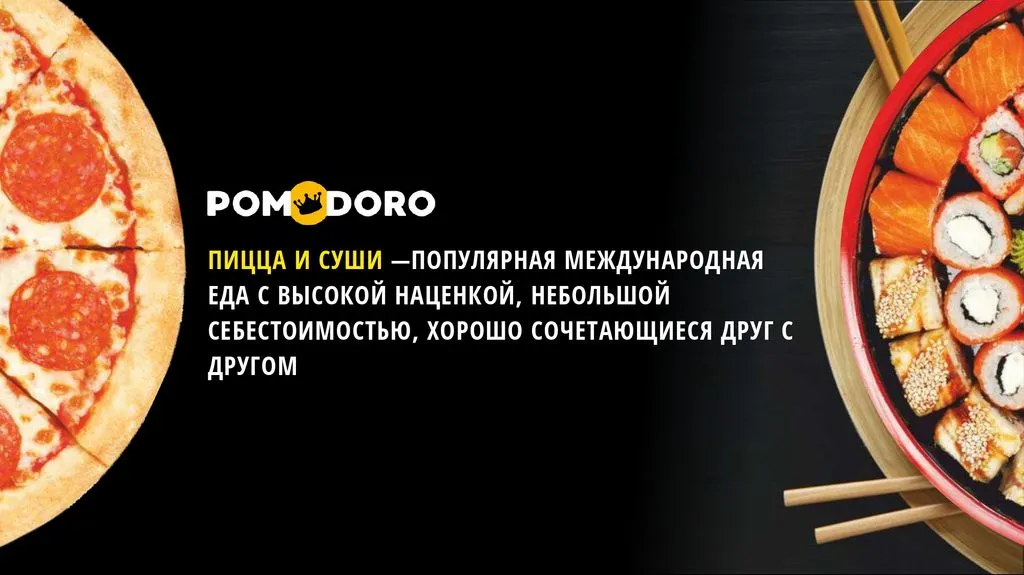 Франшиза Pomodoro – это простой способ открыть заведение, сочетающее итальянскую пиццерию и японский суши-бар, с готовым сервисом доставки.