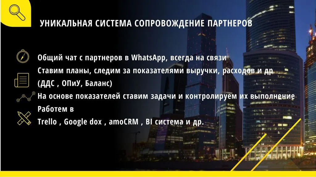 Мы делаем все возможное, чтобы наши партнеры быстрее достигали прибыли – обучаем, предоставляем эксклюзивное территориальное право, помогаем с социальными сетями, учим находить новых клиентов и удерживать старых с помощью программ лояльности.