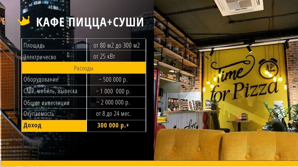 ✅ Минимальные вложения. С бюджетом от 1 000 000 рублей можно стать частью сети. Эта возможность особенно привлекательна для владельцев небольших кафе.