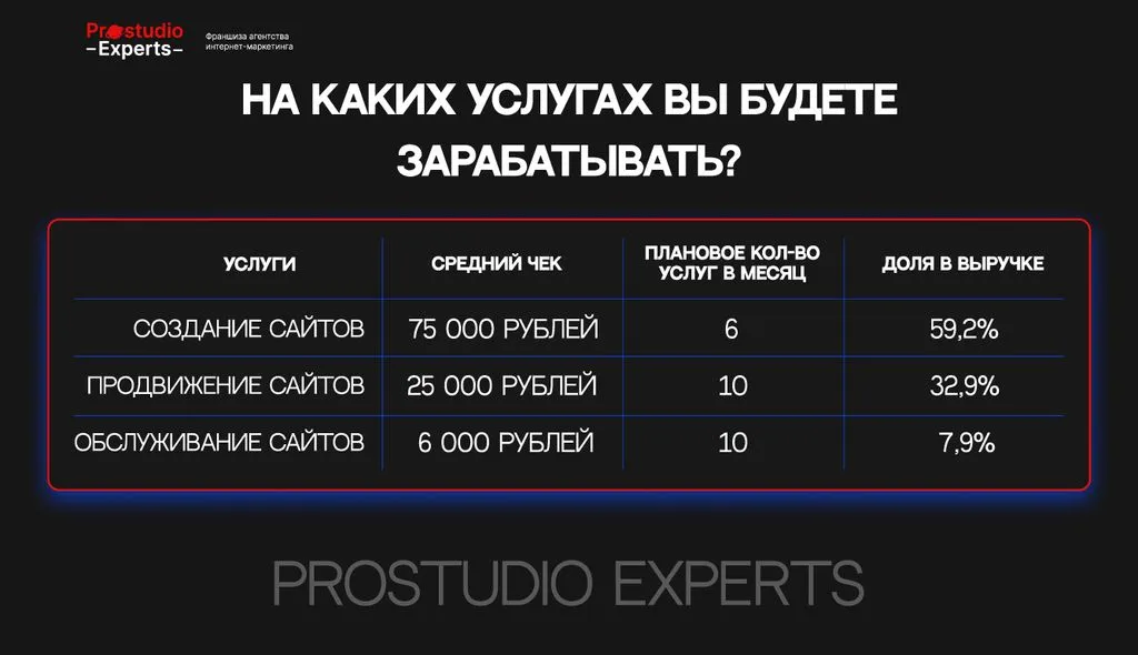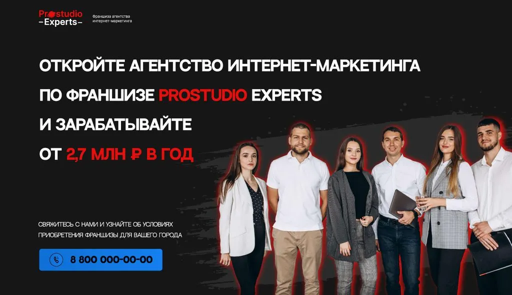 Франшиза Prostudio Experts — это возможность открыть своё маркетинговое агентство без опыта и зарабатывать до 300 000 рублей в месяц. 💸