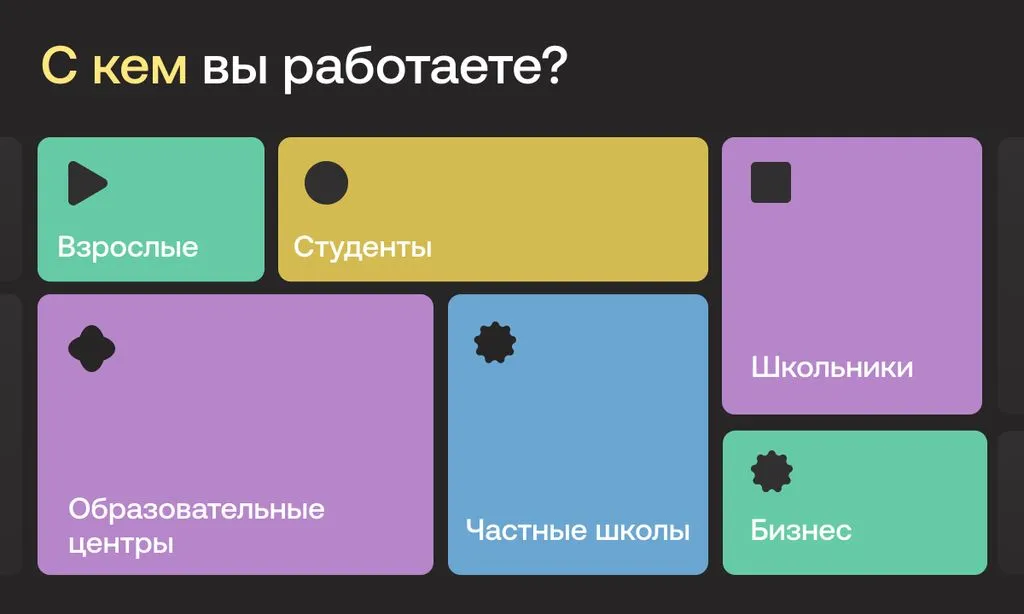 Наша франшиза обладает высокой эффективностью и подходит для образовательных центров, частных школ и специалистов в сфере образования. 🏫 Она идеально подходит для центров подготовки к экзаменам, частных школ и языковых школ, а также для частных специалистов — психологов, коучей, профориентологов, педагогов и тренеров. 💼