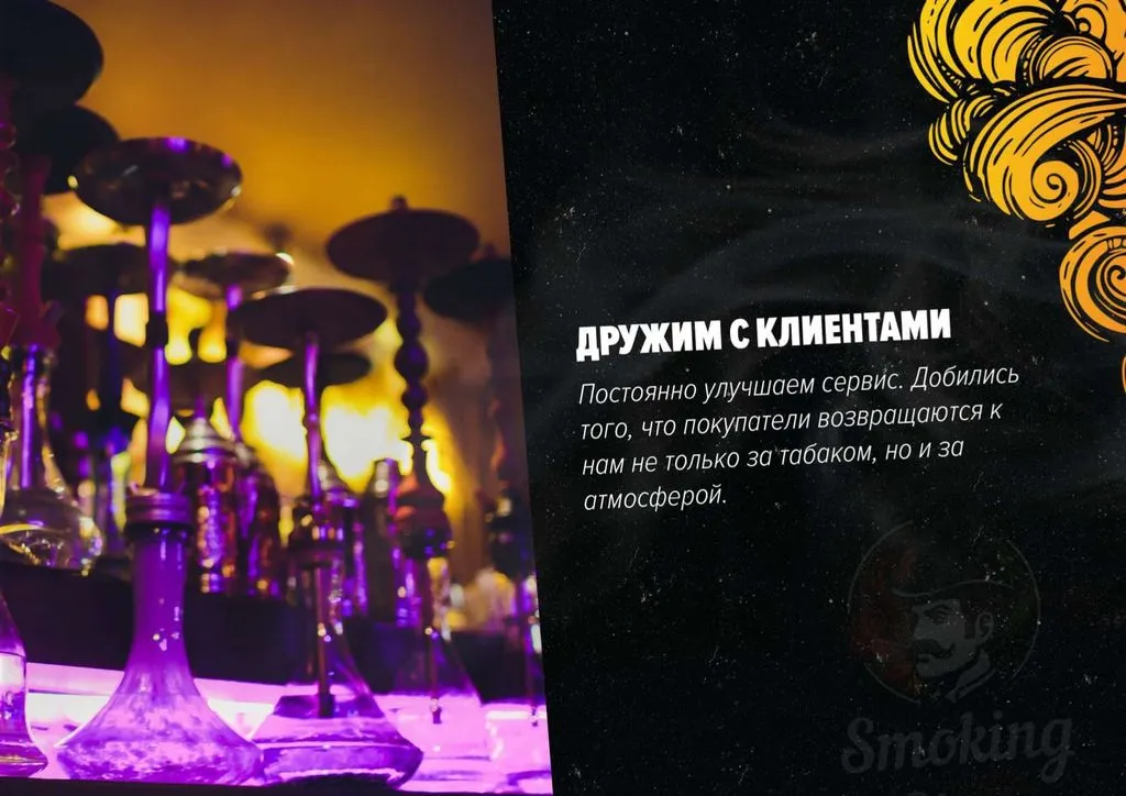 «Smoking Shop» начал свою историю в 2015 году с большого увлечения кальянами. Наша цель - предложить покупателям не просто продукт, а особый сервис, где каждый почувствует себя другом нашей сети, даже если он впервые заходит в наш магазин. 🤝