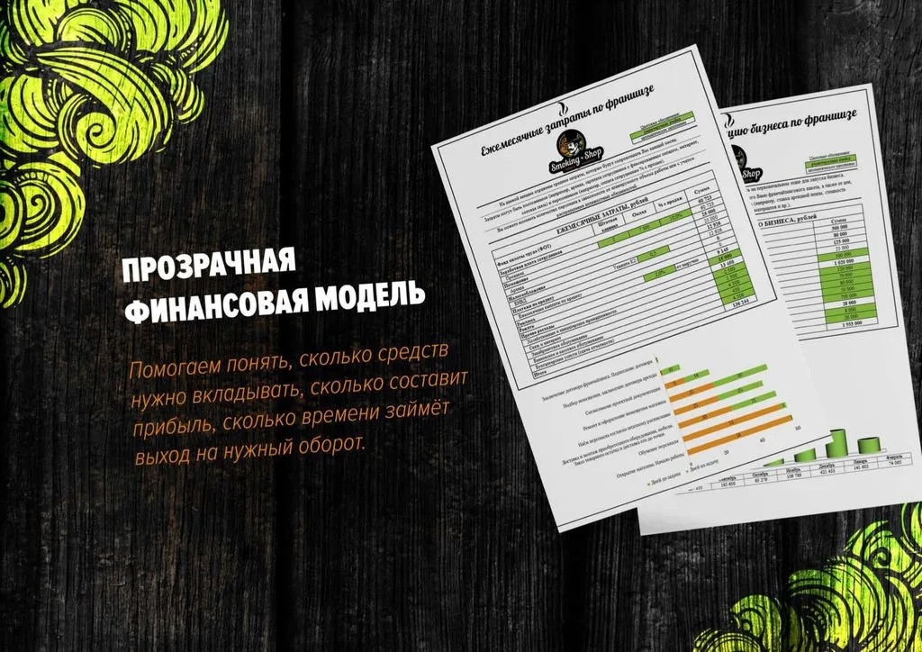 Магазин «Smoking Shop» приносит от 300 000 рублей чистой прибыли в месяц 💸, вложения начинаются от 900 000 рублей, а срок окупаемости по договору составляет до 12 месяцев. Партнеры получают гарантию обмена неликвидного товара на весь срок действия договора.