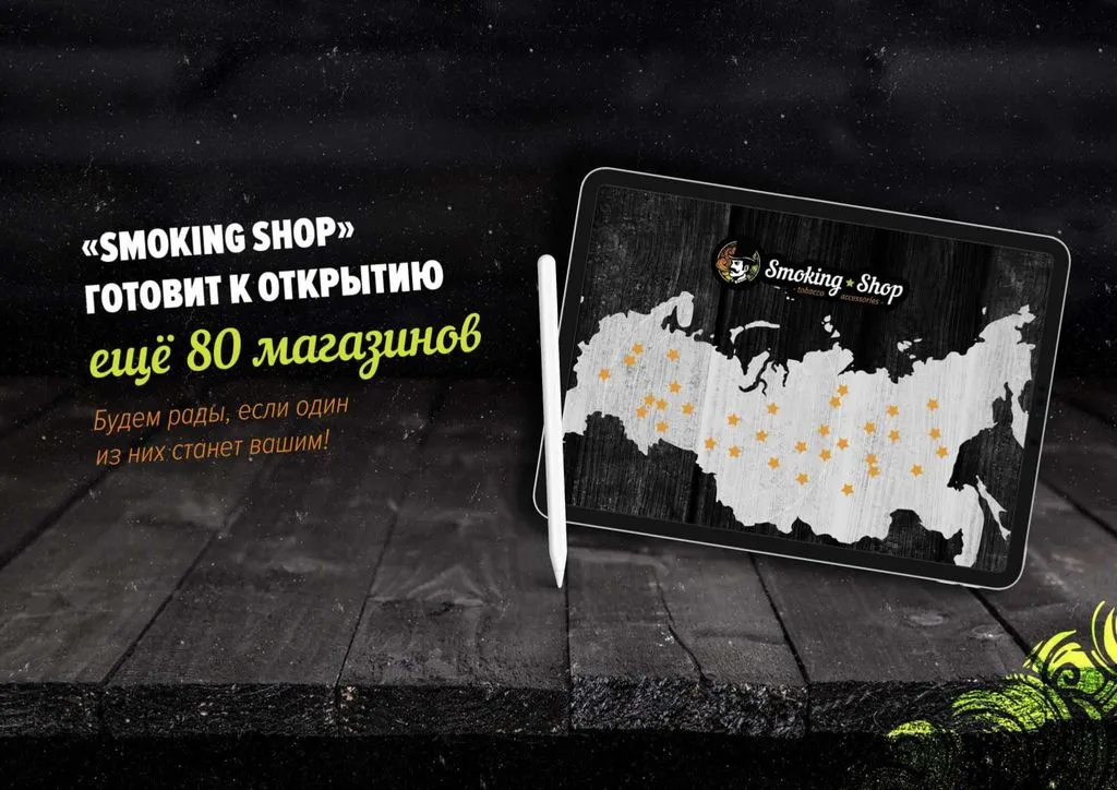 Мы растем каждый день! Всего за 5 лет мы открыли первый магазин «Smoking Shop» в Кирове, а сегодня мы - большая федеральная сеть с более чем 850 франчайзи по всей стране. 🚀 Но мы не планируем останавливаться и ставим цель открыть 5000 магазинов «Smoking Shop» к 2026 году!