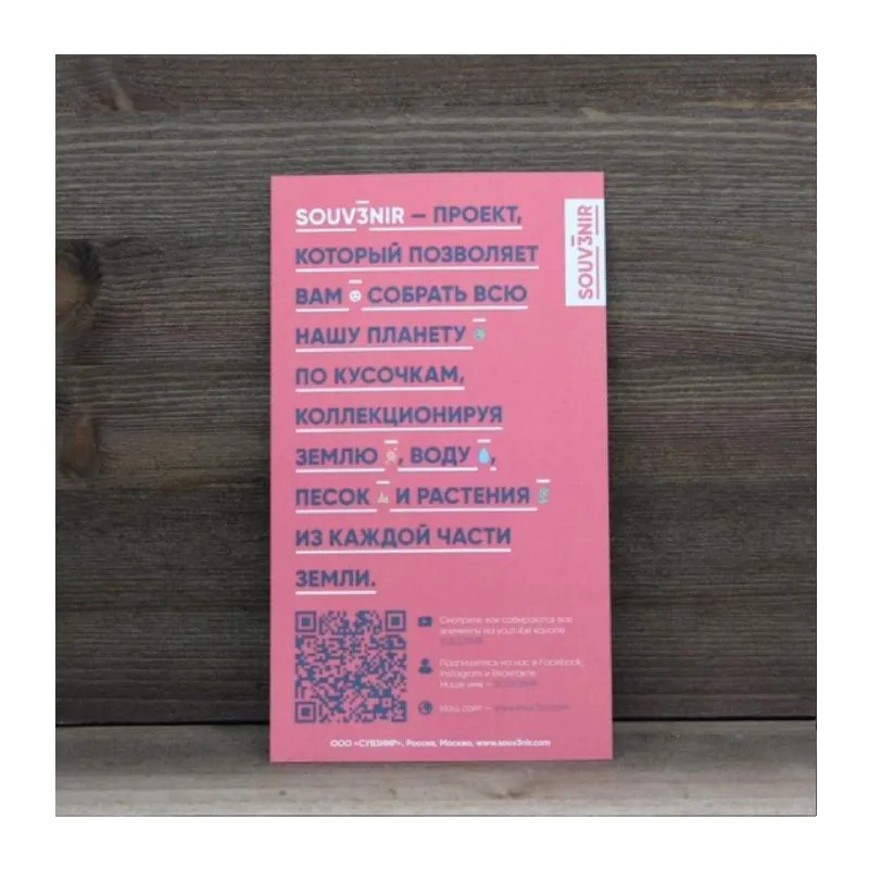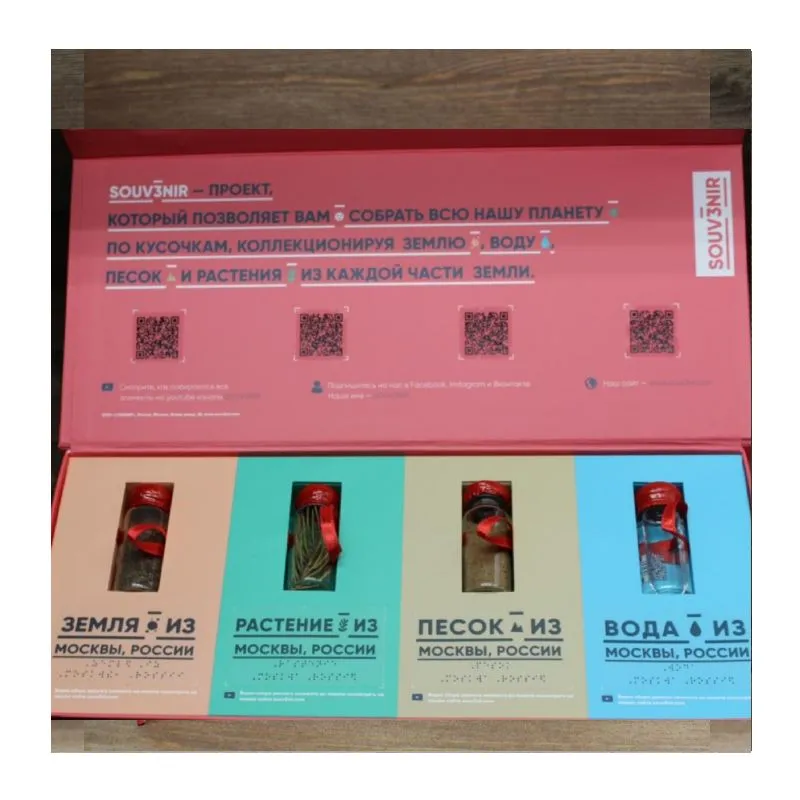 Проект SOUV3NIR предлагает инновационный формат коллекционирования и подарков, объединяющий элементы со всех уголков мира. Представьте себе сувениры, которые содержат фрагменты настоящей природы разных стран — песок, землю, воду и растения. Это концепция, в которой каждый сувенир превращается в уникальный кусочек планеты. 🌿