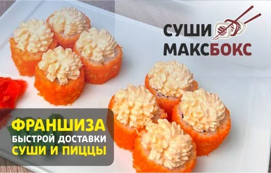 На производствах «СУШИ МАКС БОКС» готовят суши, роллы 🍣, пиццу 🍕. Забрать заказ гости могут уже через 20 минут, а получить доставку в течение 60 минут. ⏰