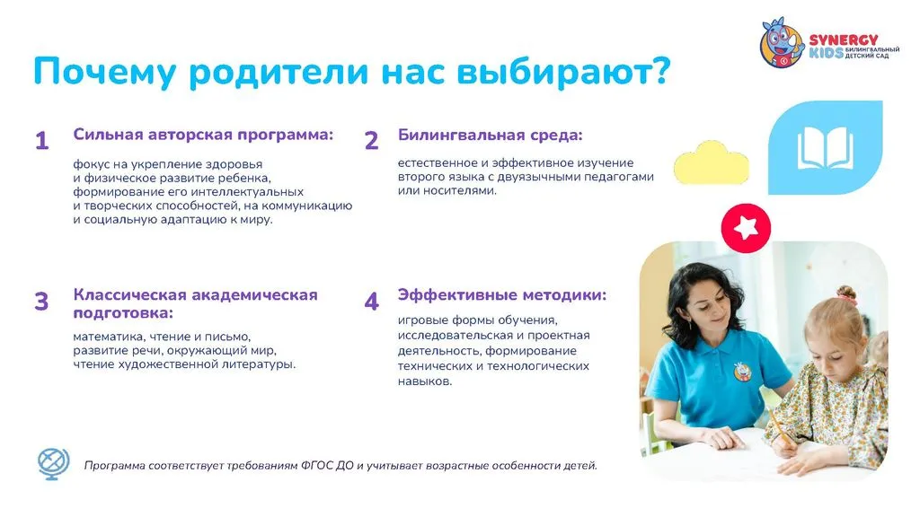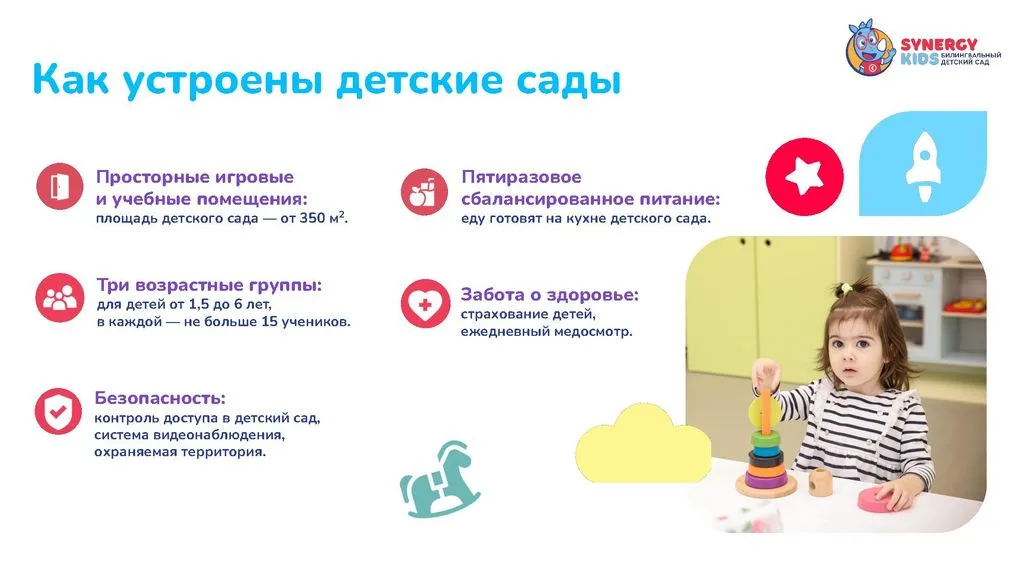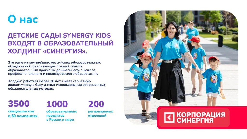 Synergy Kids — это сеть частных билингвальных детских садов от крупнейшего образовательного холдинга России «Синергия». 🌟