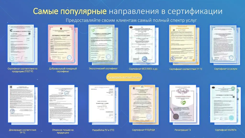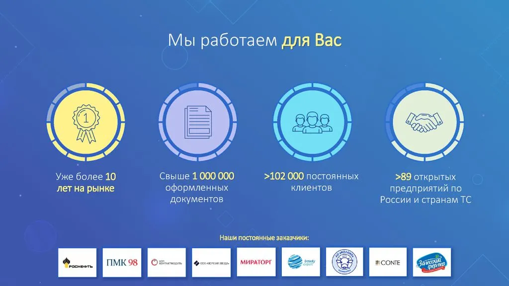 Мы были одними из первых, кто зарекомендовал себя в статусе Органа по сертификации. У нас более 102 000 постоянных клиентов и более 1 000 000 оформленных документов! 💼 Наши услуги постоянно расширяются, охватывая весь потребительский сектор.