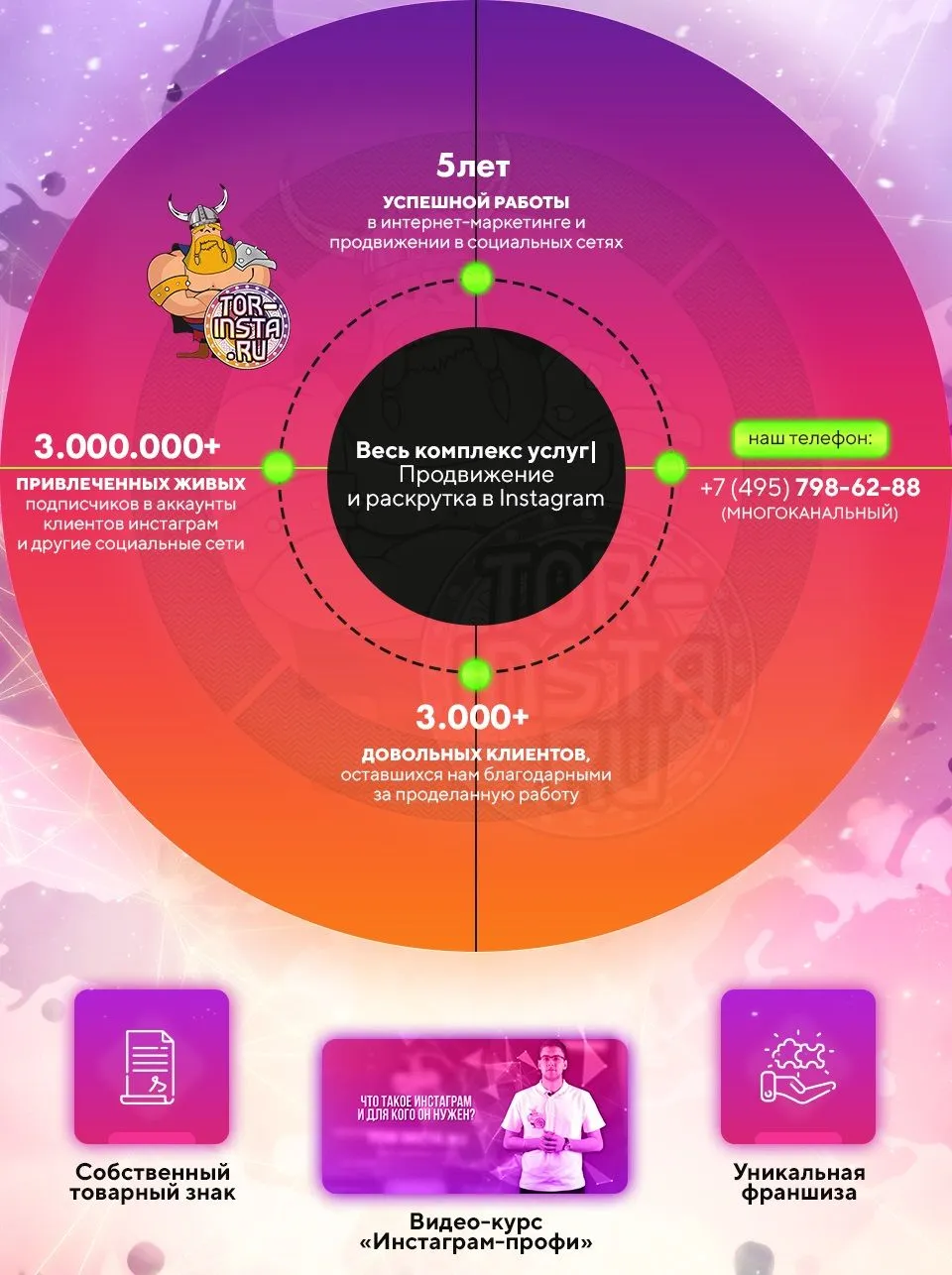 Франшиза Tor-insta — это предложение для тех, кто хочет начать бизнес в сфере цифрового продвижения и раскрутки в социальных сетях. Эта компания предоставляет готовую модель бизнеса для создания и управления аккаунтами в Instagram, продвижения брендов и продуктов. Важный акцент делается на применении эффективных стратегий в социальных медиа.