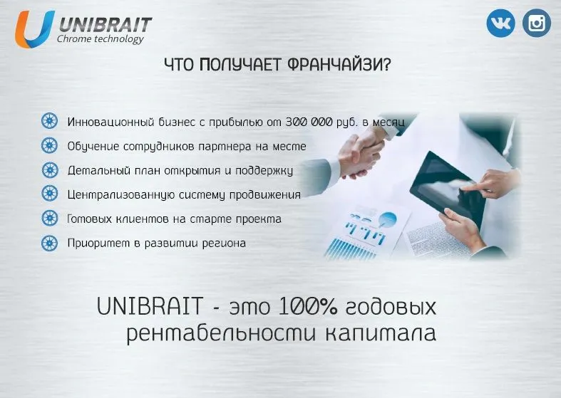Преимущества франшизы Unibrait включают: