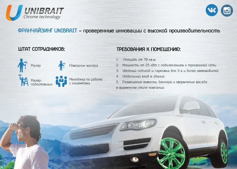 Франшиза Unibrait предоставляет возможность предпринимателям присоединиться к успешному бизнесу в области защитно-декоративных покрытий. Этот бизнес-модель ориентирована на тех, кто хочет начать своё дело, имея поддержку и опыт уже состоявшегося бренда.