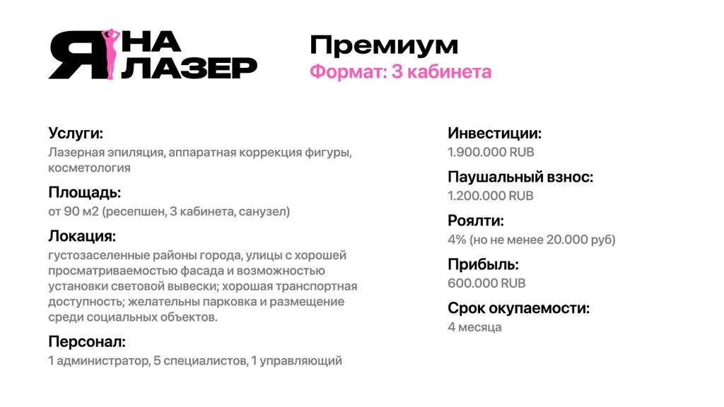 Франшиза «Я на Лазер» — это возможность открыть клинику лазерной эпиляции и зарабатывать до 500 000 рублей в месяц 💼.