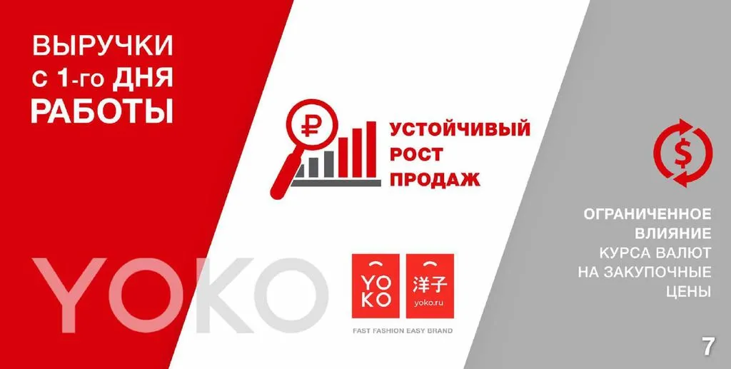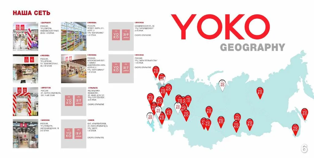 За 4 года YOKO открыла 11 собственных магазинов и более 35 партнёрских. YOKO стала одной из самых известных сетей формата фиксированных цен в России. 🇷🇺