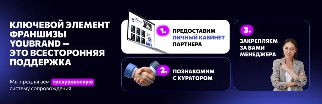 Стоит учитывать, что с самого начала сотрудничества мы присваиваем каждому партнеру персонального менеджера, который становится надежным гидом на протяжении всего пути — от запуска бизнеса до достижения стабильной прибыли. Этот специалист не только консультирует по всем вопросам, но и предоставляет детальный план действий, помогая адаптировать стратегию под индивидуальные нужды.