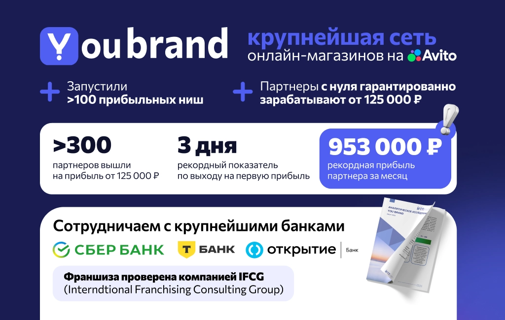 На данный момент YouBrand является крупнейшей сетью онлайн-магазинов на Авито, где вход доступен даже новичкам без опыта. В отличие от сложных маркетплейсов вроде Ozon или Wildberries, Авито — это простая и массовая платформа с огромным трафиком (до 365 миллионов посещений в месяц), где 70% покупок происходят через чат, благодаря этому общение с клиентами автоматизируется через чат-ботов. Мы подчеркиваем легкость запуска: бизнес можно вести удаленно, из любого региона России или СНГ, без возрастных или образовательных ограничений (от 18 до 60 лет). Это не просто франшиза, а инструмент для быстрого старта в высокодоходной нише, где спрос растет ежегодно.