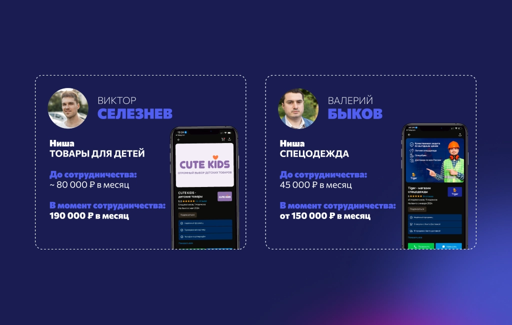 Плюс, масштабируемость: можно открыть несколько магазинов, менять ниши и автоматизировать процессы для пассивного дохода. Наши партнеры отмечают быструю окупаемость (до 2 месяцев) и среднюю прибыль от 167 тысяч рублей в месяц, что подтверждает эффективность нашей бизнес модели.