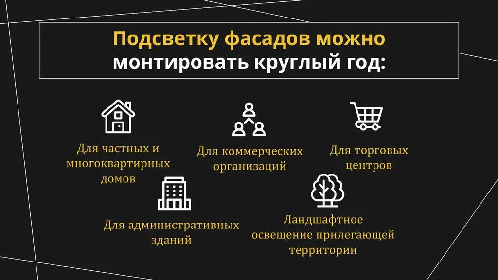 Компания «Зимняя Сказка» 🌟 специализируется на производстве и установке светодиодной подсветки фасадов для загородных домов, административных зданий и прилегающих территорий. Осенью и зимой мы создаём волшебную новогоднюю подсветку 🎅, а летом – декоративное освещение и системы автоматического полива для газонов 🌻.